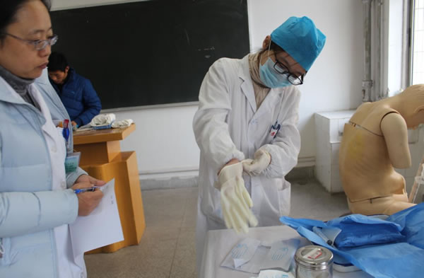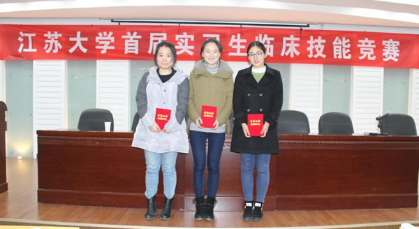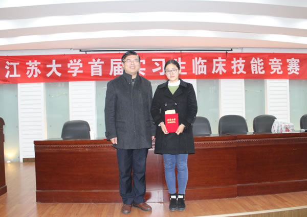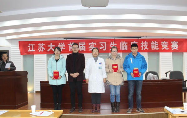 第一届实习生临床技能竞赛”活动,竞赛分初赛和复赛。初赛与本学年第一次临床实习教学检查同步进行,在各附属医院、教学医院及实习医院中,经专家考核选定27家医院的60名实习同学参加复赛,复赛于11月28日在北固校区隆重举行。经过理论考试、临床技能操作三站循环测试和专家面试三个赛程。采用随机抽签、现场亮分与逐步淘汰方式,经过激烈角逐,最终产生一等奖3名,二等奖6名,三等奖9名。七位评委为三等奖得主分别颁奖,医学部领导和第一临床医学院领导为二等奖得主颁奖,施卫东副校长亲临活动现场为一等奖得主颁奖后,发表热情洋溢的讲话,对这一活动给予充分肯定。