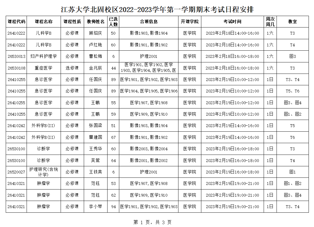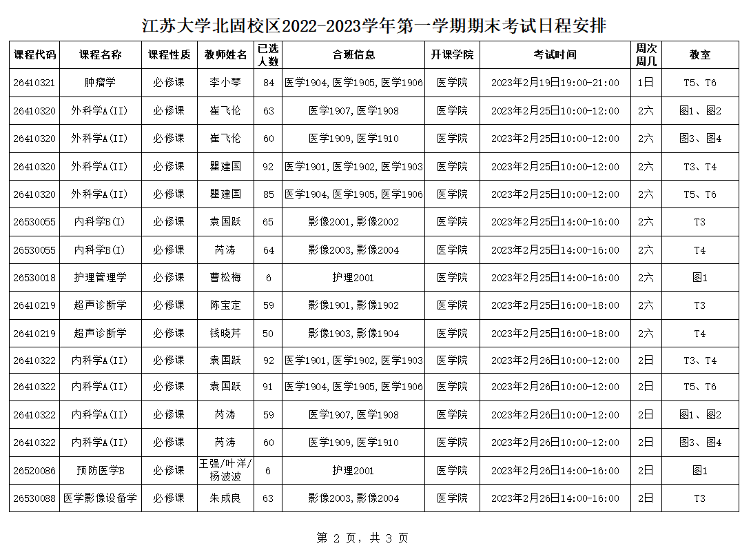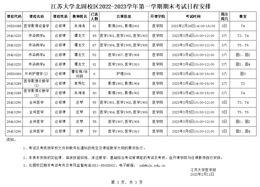 快猫短视频 北固校区2022-2023学年第一学期期末考试日程安排(2.11)
