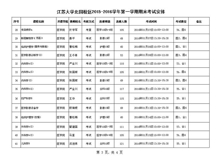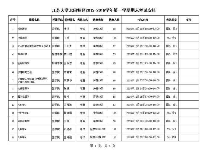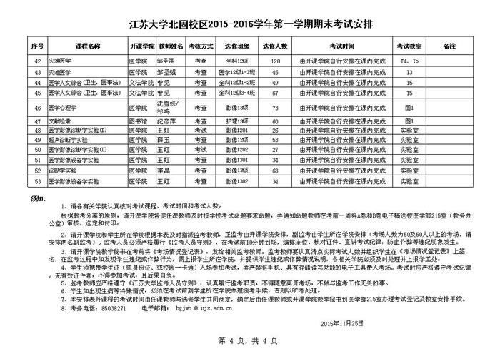 快猫短视频 北固校区2015-2016-1期末考试安排