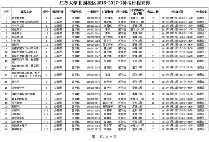 北固校区2016-2017-1补考安排.xls