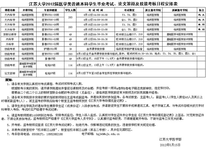 快猫短视频 2012届医学类普通本科学生毕业考试、论文答辩、技能考核日程安排表