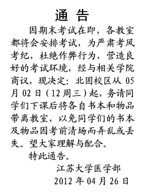 通告和考场特别提醒