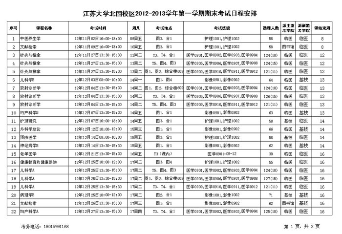 北固校区2012-2013学年第一学期期末考试日程安排.xls