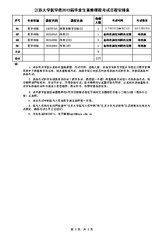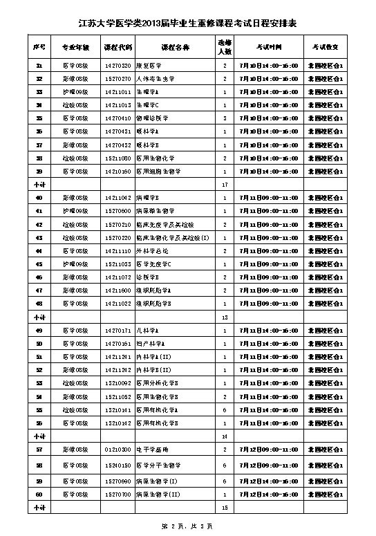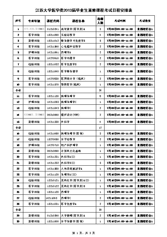 医学类2013届毕业生重修考试日程安排