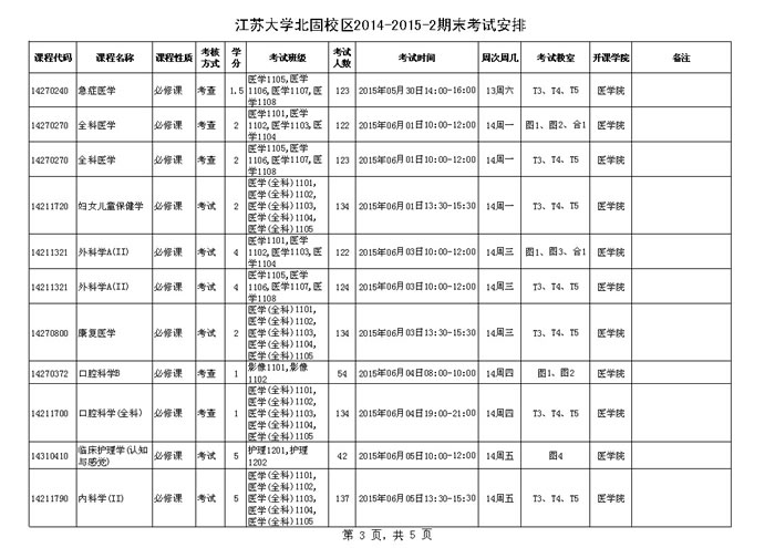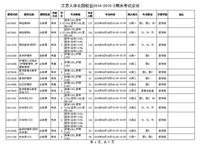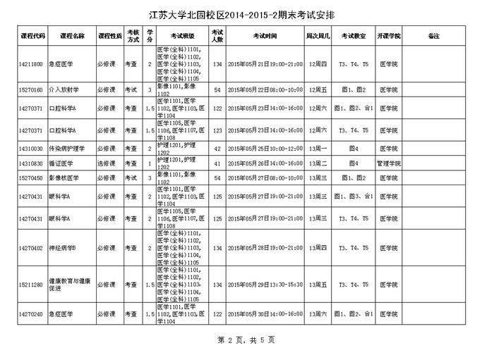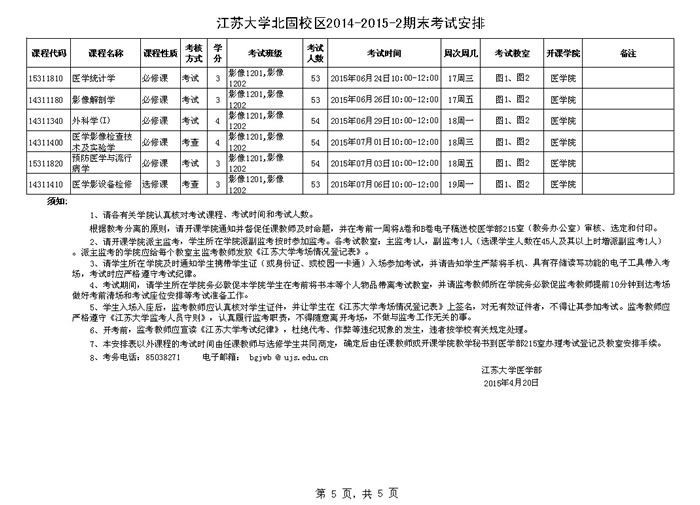 快猫短视频 北固校区2014-2015学年第二学期期末考试安排