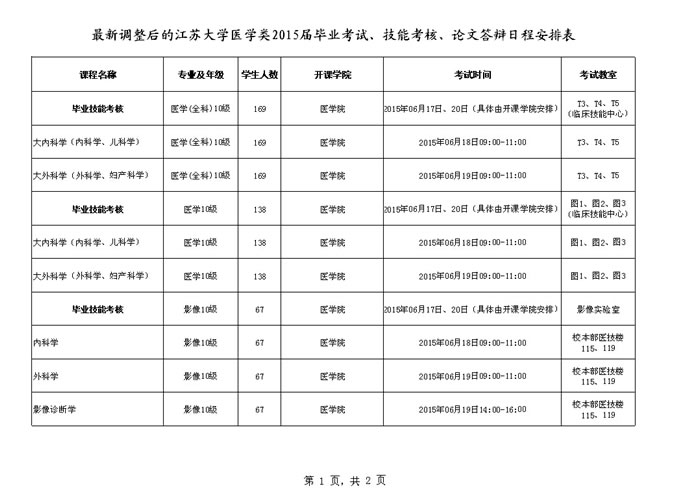 最新调整后的快猫短视频 医学类2015届毕业考试、技能考核、论文答辩日程安排表