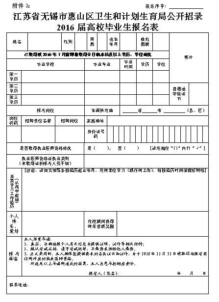 无锡市惠山区卫生和计划生育局公开招聘2016届高校毕业生公告