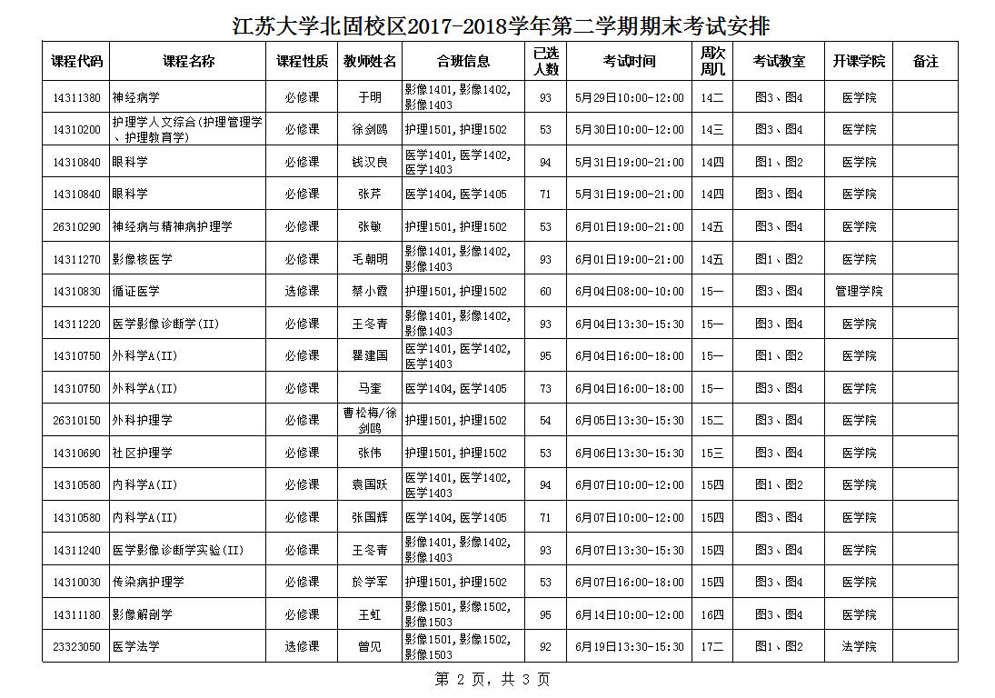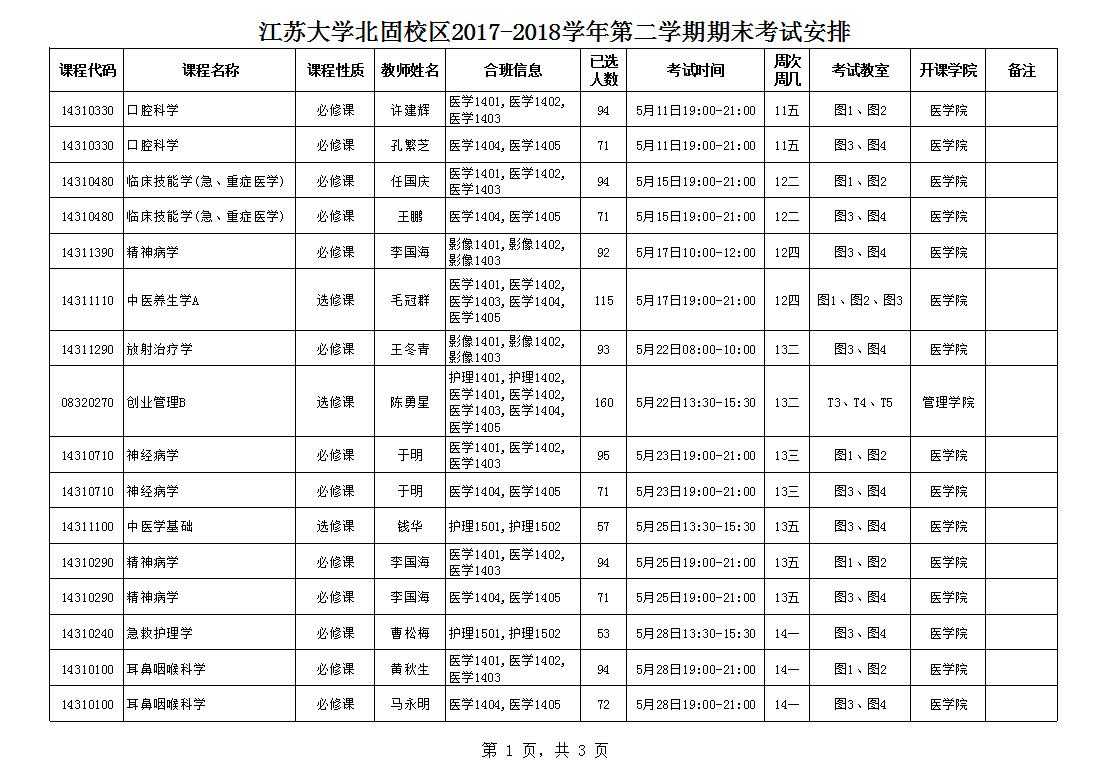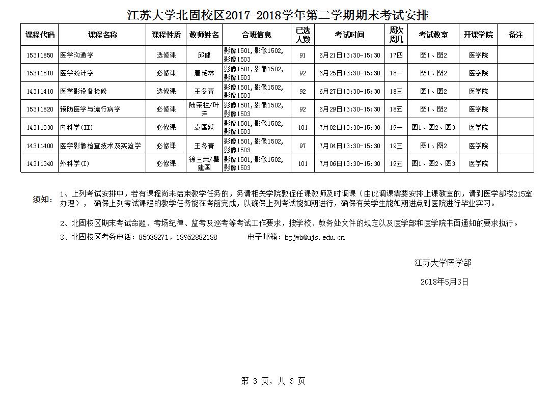 快猫短视频 北固校区2017-2018学年第二学期期末考试安排
