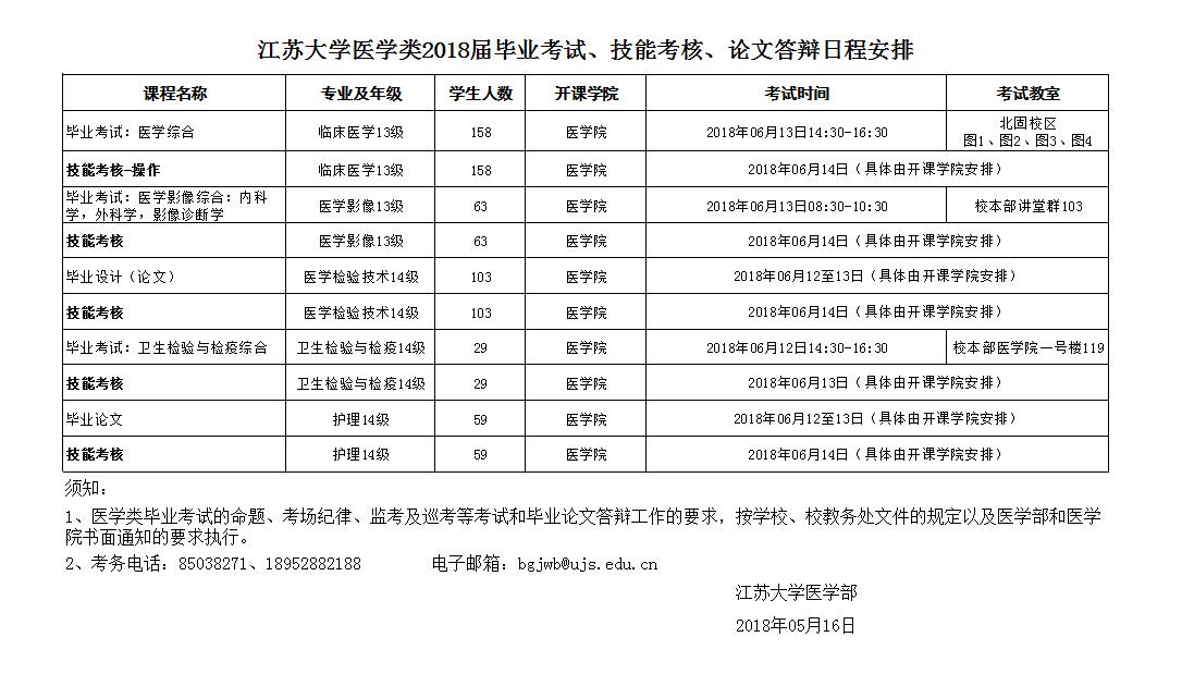 快猫短视频 2018届医学类毕业考试、技能考核、论文答辩日程安排