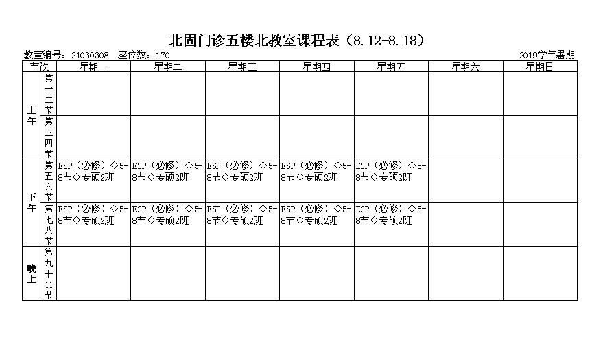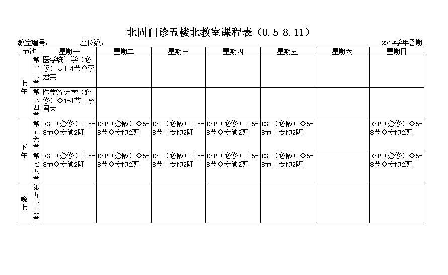 北固校区2019年级研究生暑期课表(门诊五楼北教室)